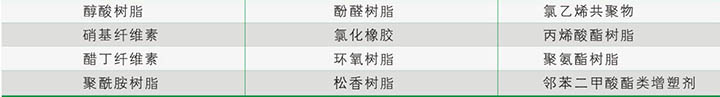 INT 8601樹脂與絕大多數用于涂料/油墨的樹脂有良好的相容性。包括下列樹脂: